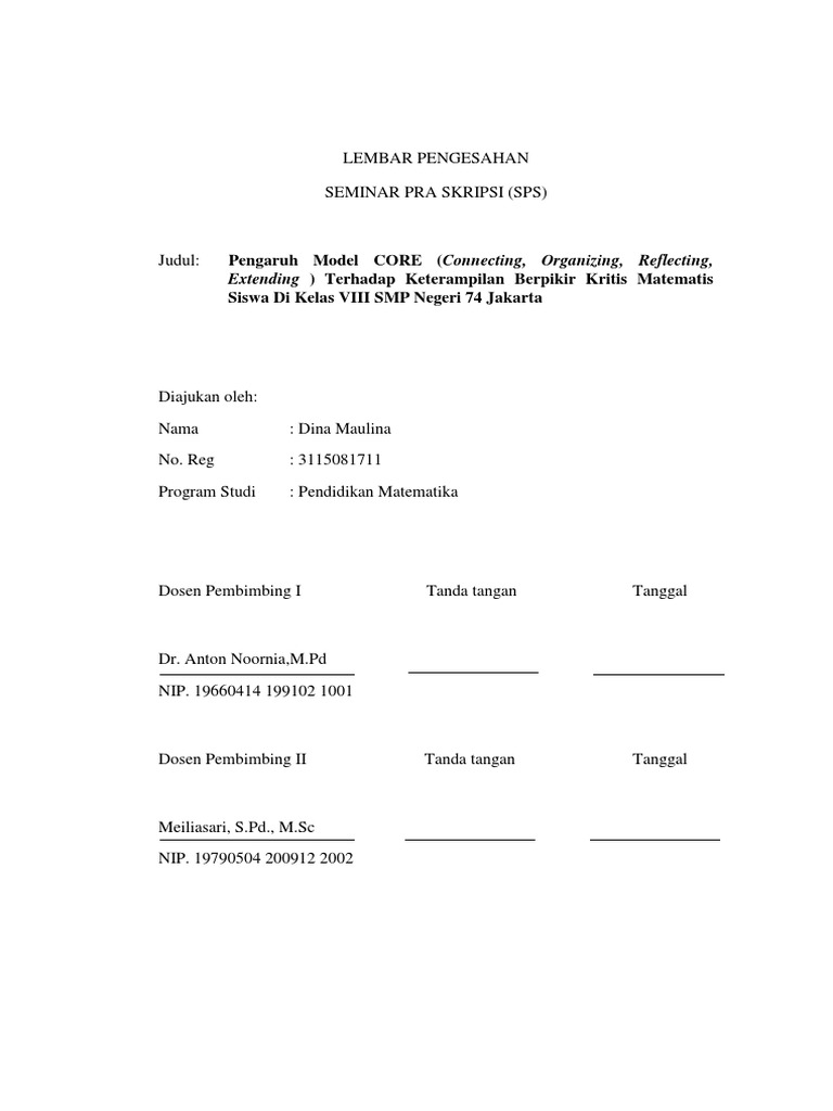 Doc Contoh Lembar Pengesahan Skripsi Dan Ta Kokok Ares Academia Edu