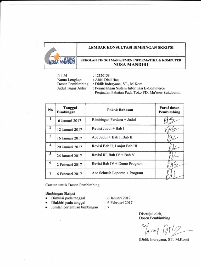 Contoh Lembar Konsultasi Bimbingan Tugas Akhir Hendri Setiawan